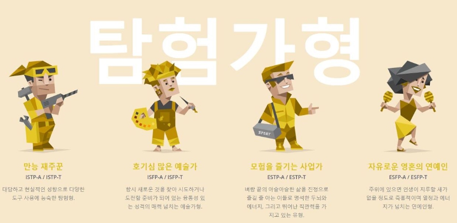 ISTP (장인) - 담대하데다가 공리적인 특징으로, 모든 종류의 도구를 자유자재로 사용하는 장인이라고 합니다.