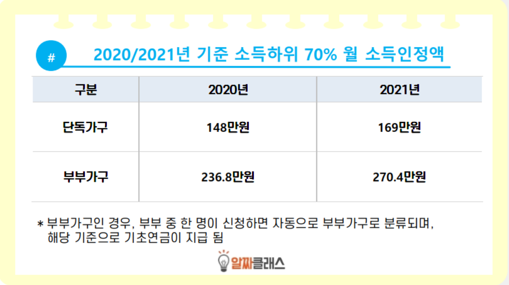 만 65세를 대상으로 하위소득 70%에 결성하는 분들에게 지급된다 하였습니다.