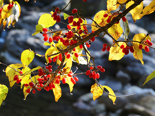 산수유 열매는 예전부터 ‘신선이 먹는 열매’라 명명되며 한방에서 약으로 쓰였으며 가을에 열매가 판연히 익으면 채취해서 씨를 제거한 뒤, 건조해 사용합니다. 말린 산수유 열매는 차나 술, 약재 등으로 만들어 먹어요.